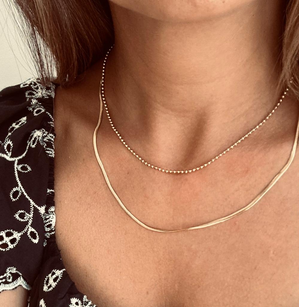 Cadena finita plana de serpiente de acero inox con baño de oro.