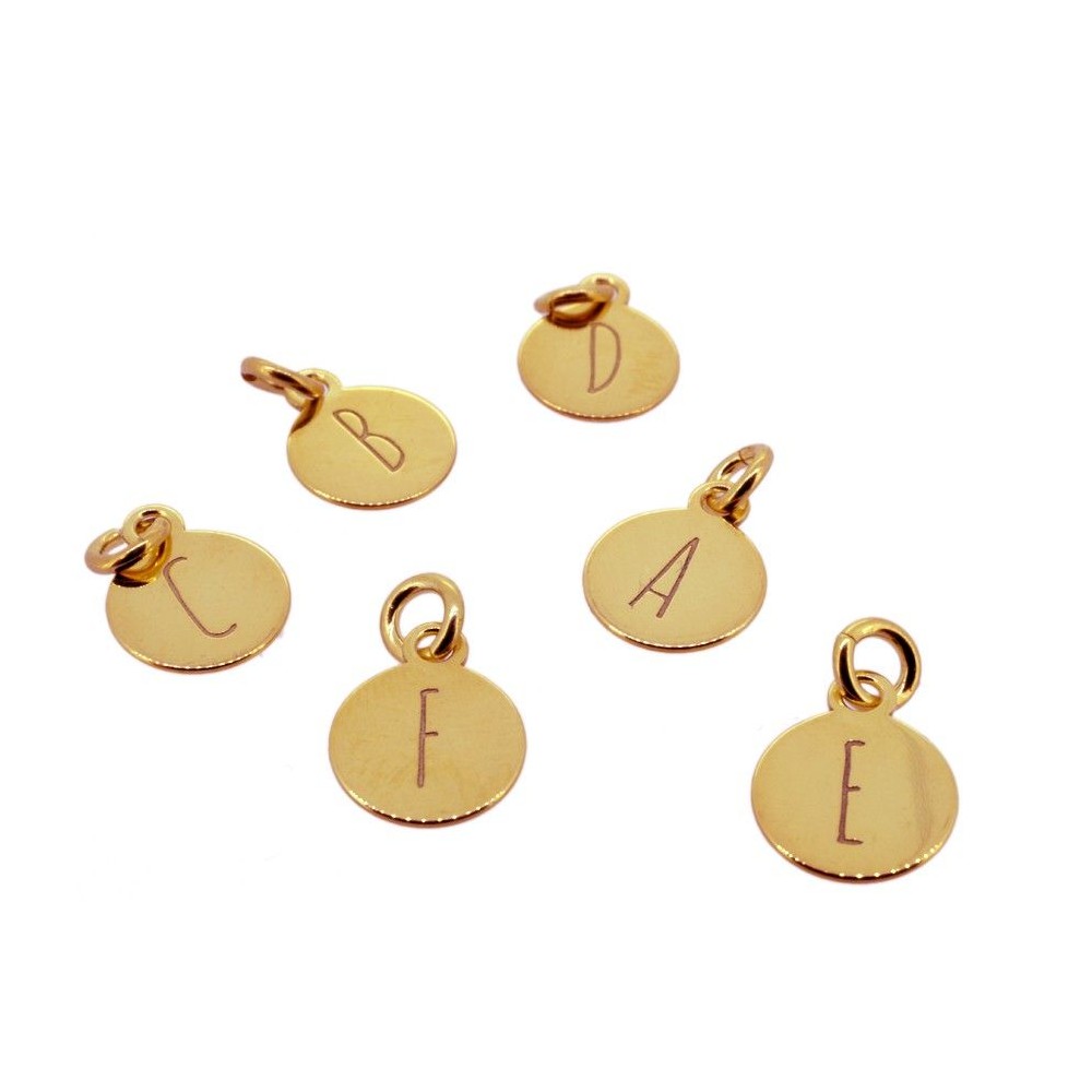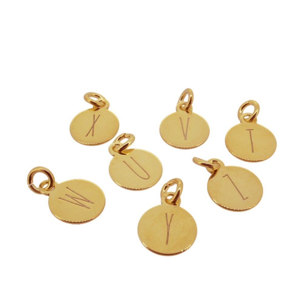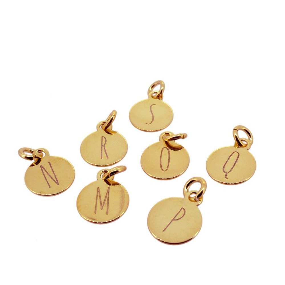 Inicial grabada con letra retro sobre chapita de plata bañada en oro para añadir a tus pulseras o collares. Te lo montamos nosotras, anótalo en “Comentarios” al hacer el pedido o envíanos un mail / whatsapp.