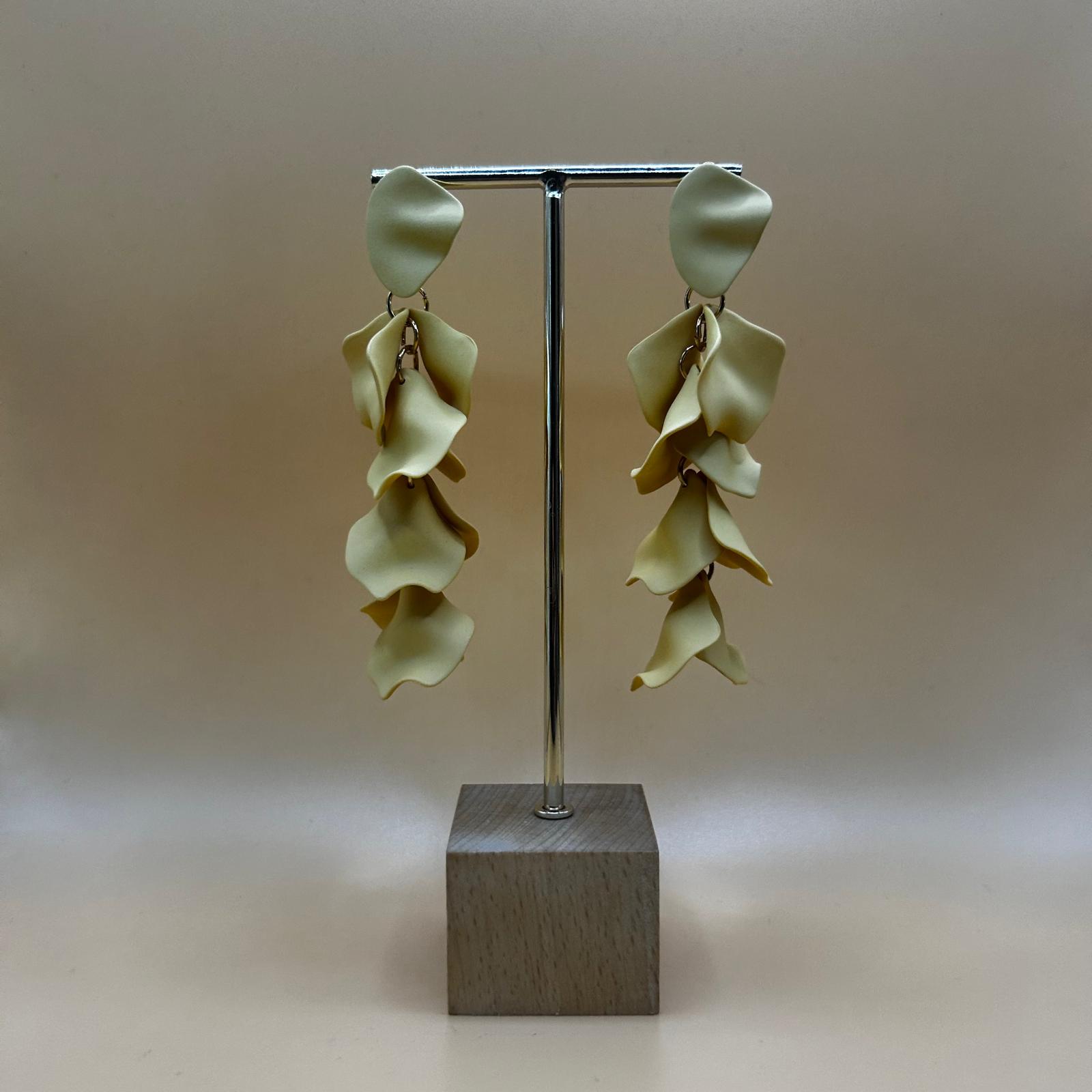 Pendientes largos con pétalos en cascada, de colores super favorecedores, y no pesan.