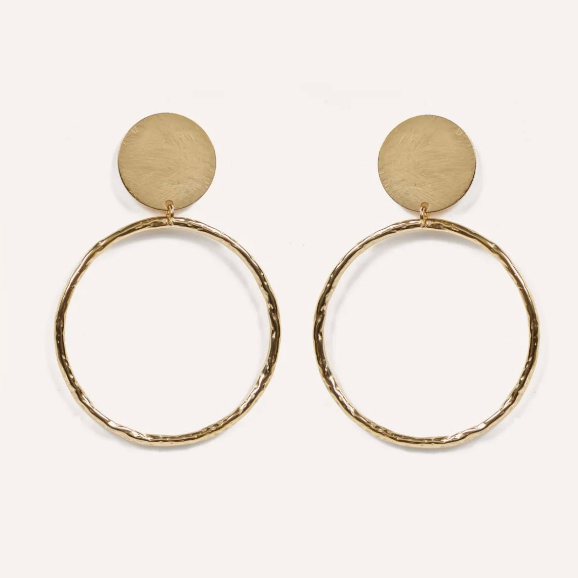 Pendientes dorados de acero inoxidable con colgante en forma de círculo.